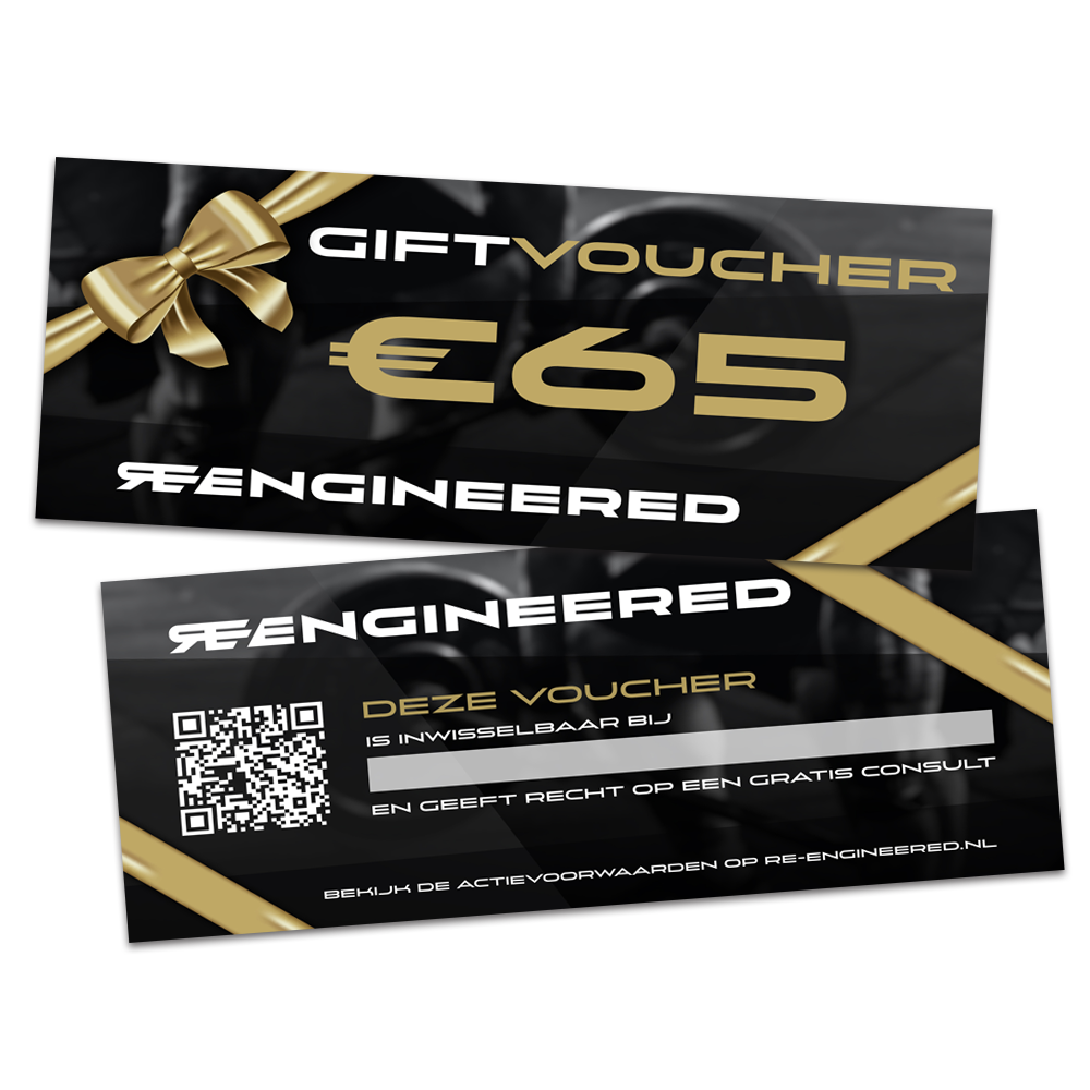 Voor Re-Engineered hebben we al heel wat mooie ontwerpen mogen maken en deze worden nu aangevuld met deze cadeaubon. Een gift voucher ontwerp op DIN Lang formaat, voor- en achterkant bedrukt. Volledig in de huisstijl van Re-Engineered en compleet drukklaar aan de klant uitgeleverd!