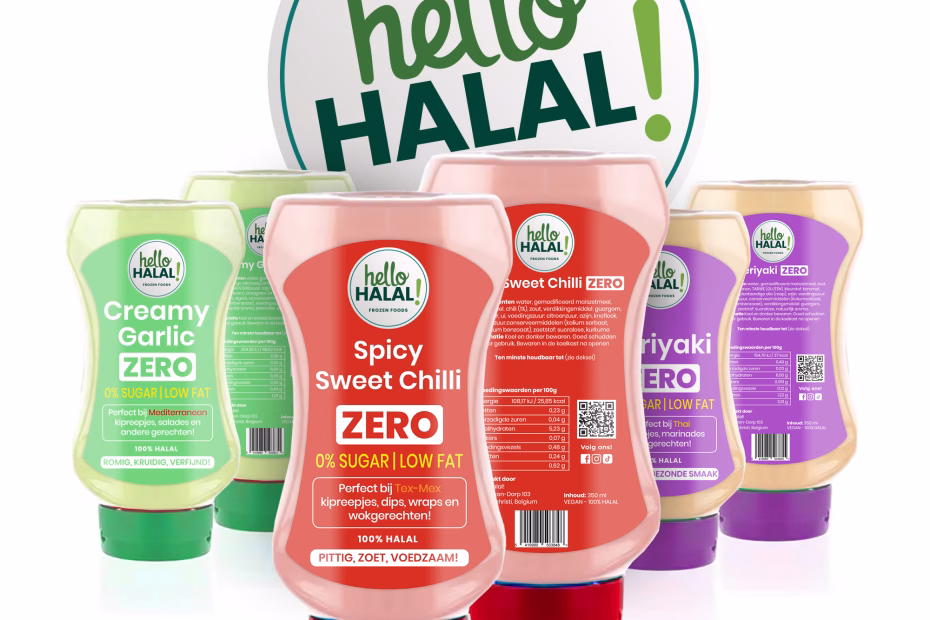 Voor de nieuwe lijn sausflessen van Hello Halal! hebben wij drie unieke etiketten ontworpen die elk de smaakbeleving van de saus weerspiegelen. De Teriyaki-saus kreeg een warmbruine tint met subtiele… Lees verder »Etiket ontwerp voor sausflessen Hello Halal!