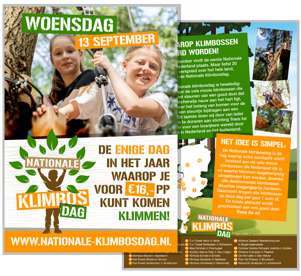 A4 dubbelzijdig 1x gevouwen tot A5. Ontwerp van 4 vlakken: Voorkant, achterkant, binnenkant links en binnenkant rechts.