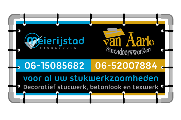 Wij kunnen ieder formaat spandoek ontwerpen bijvoorbeeld:
